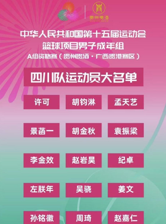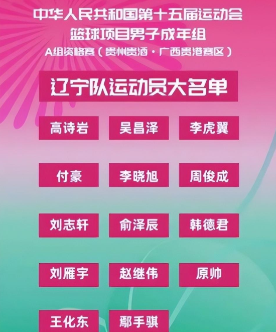 后卫:徐杰、胡明轩、赵睿、贺希宁、黎伊扬、张文逸;锋线:任骏飞、周鹏、杜润旺、王睿泽、张皓嘉;内线:沈梓捷、焦泊乔、刘传兴、李炎哲、张昊;